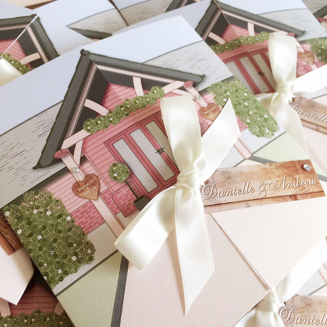 Dani and Andrew selected our wardrobe format of invitation which include guest information card and self addressed RSVP card. Totally personalised throughout, professionally printed and hand-finished to our exacting standards! Another great order for another gorgeous couple!!